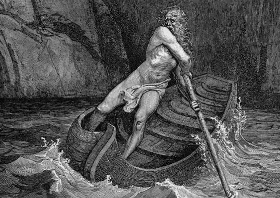 Era extraño que actualmente los muertos estuvieran llegando en tales cantidades. Llegaban de a miles cuando acostumbraban a llegar de a cincuenta. No era la obligación ni el deseo de Caronte considerar el porqué de estas cosas en su alma gris. Caronte se inclinaba hacia adelante y remaba.